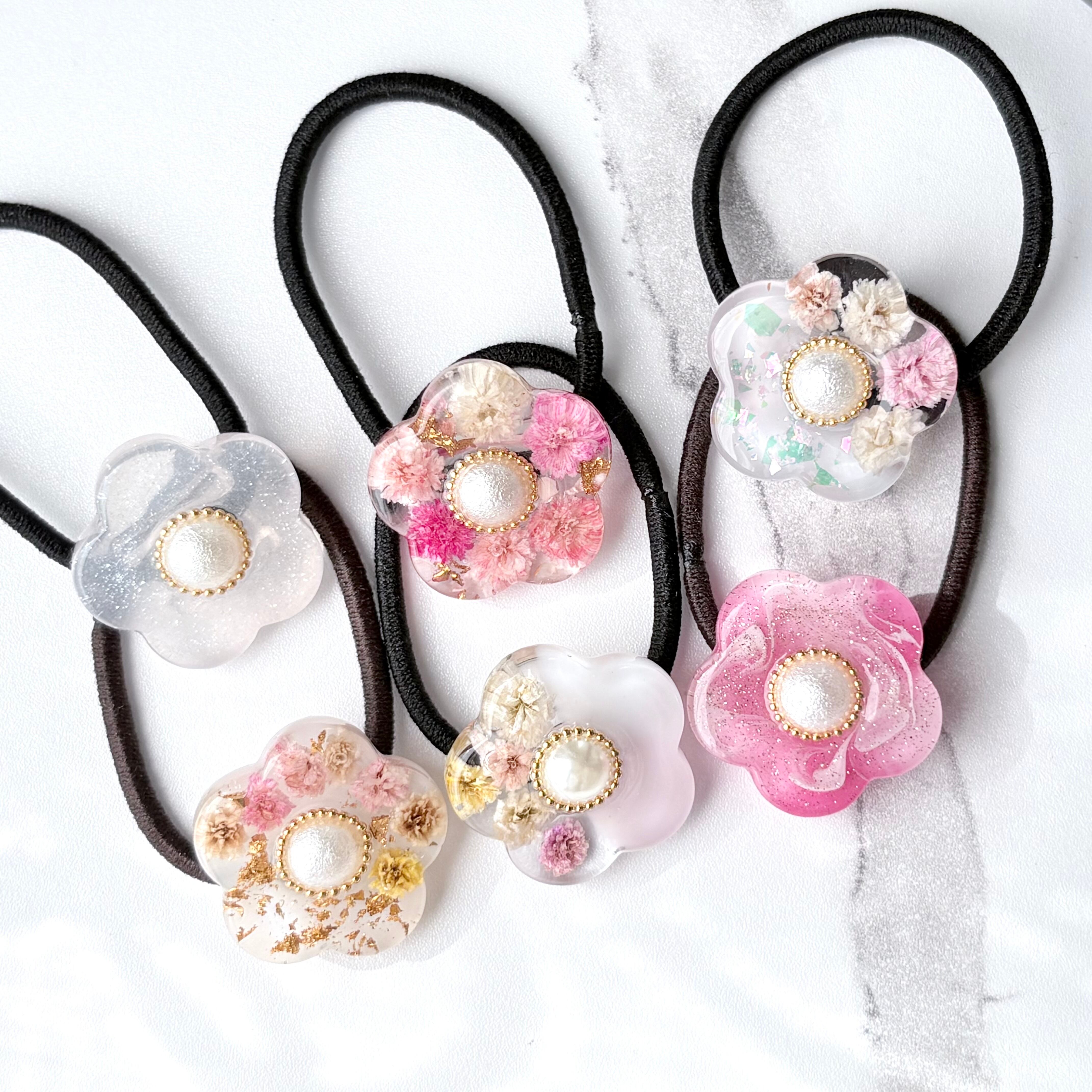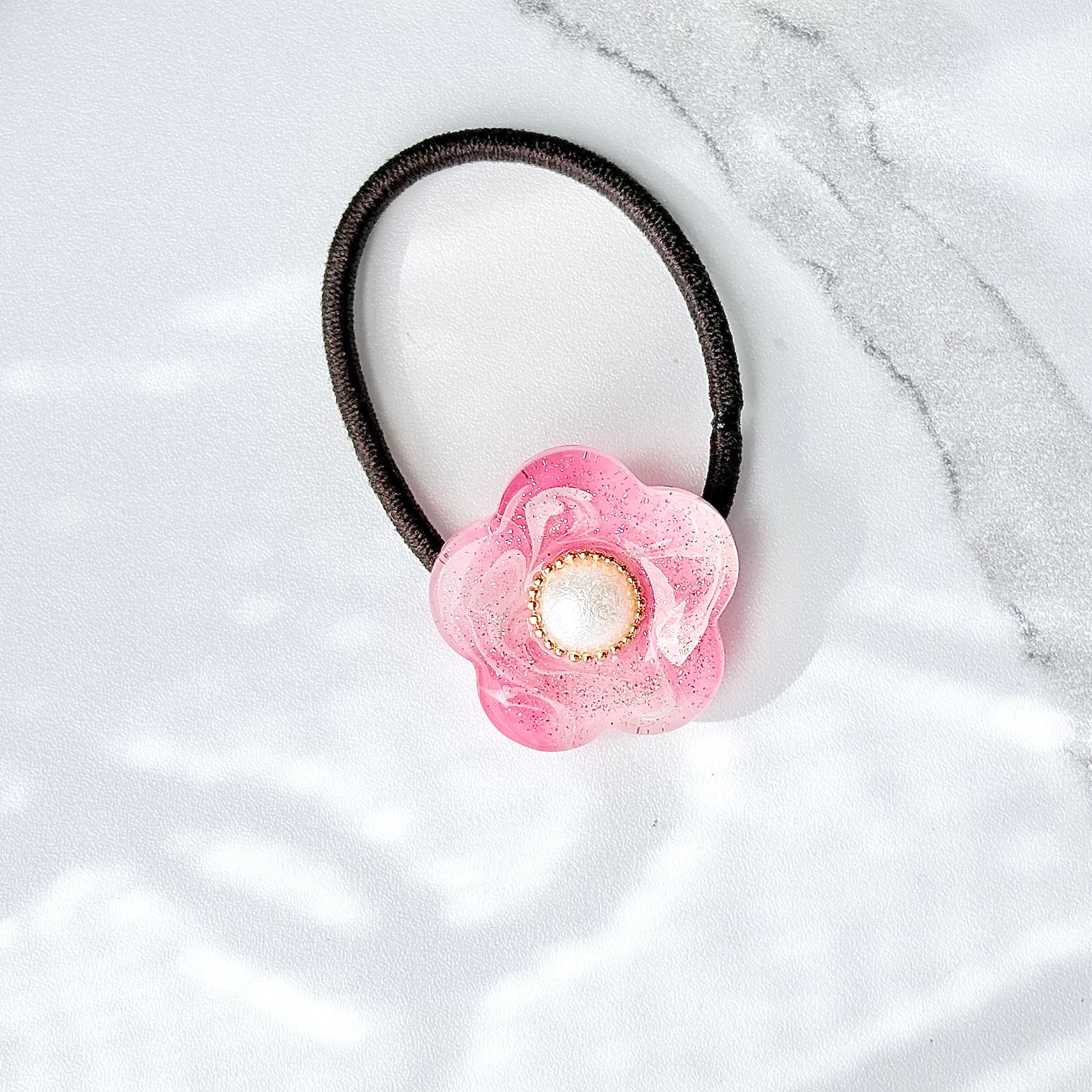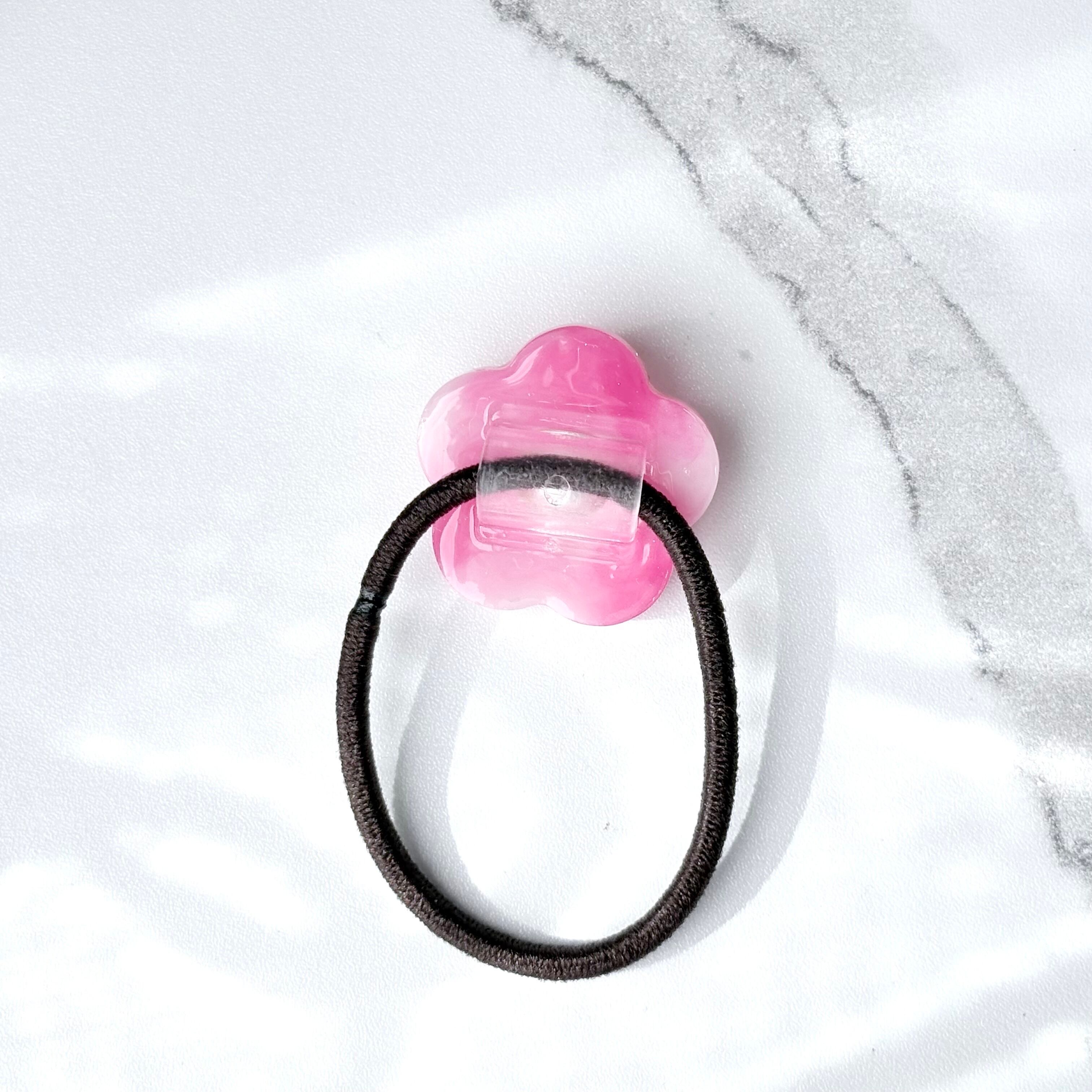 ゴム交換できる!うるうるお花ヘアゴム ビビットピンクマーブル