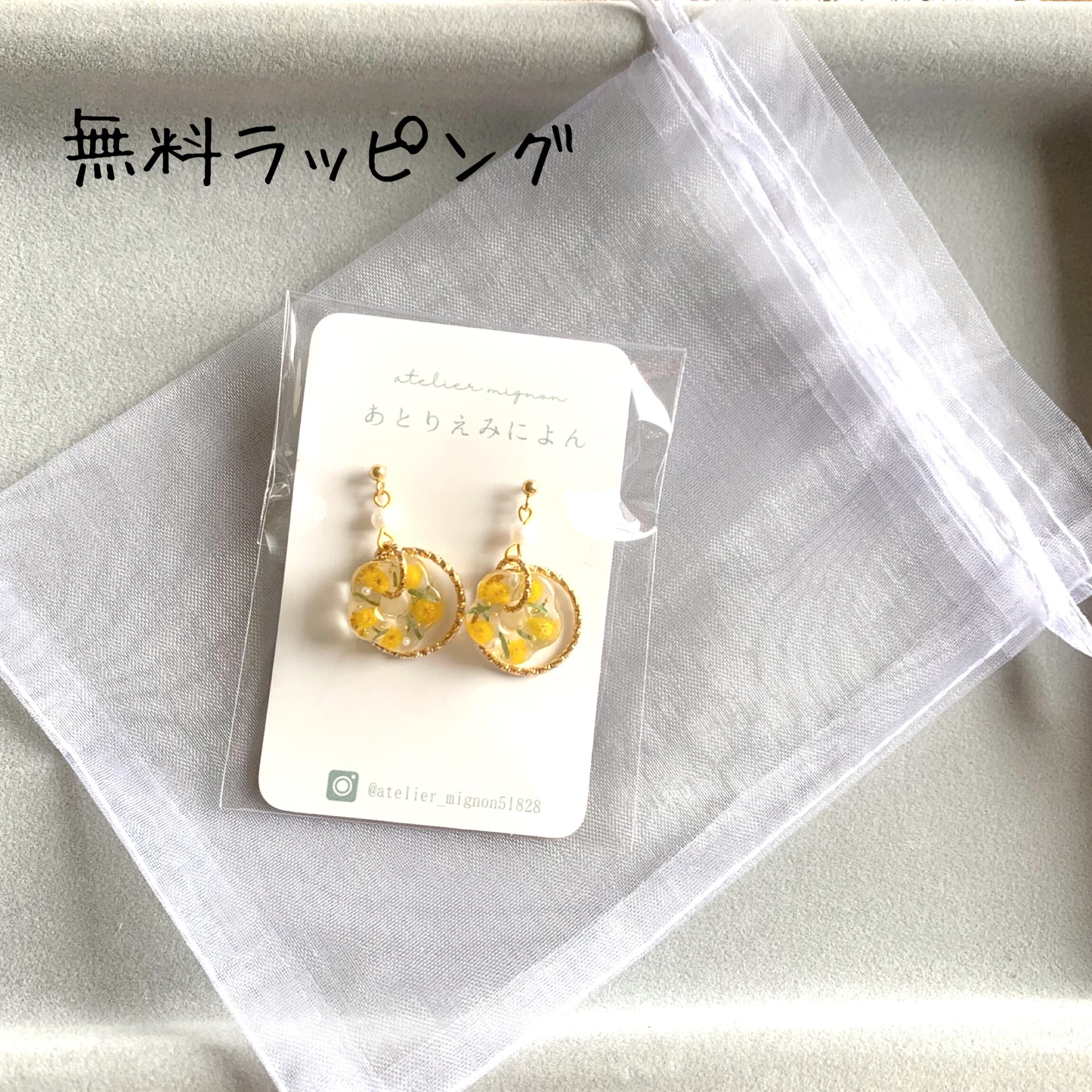 無料ギフトラッピングは、オーガンジーの巾着をお付けします。