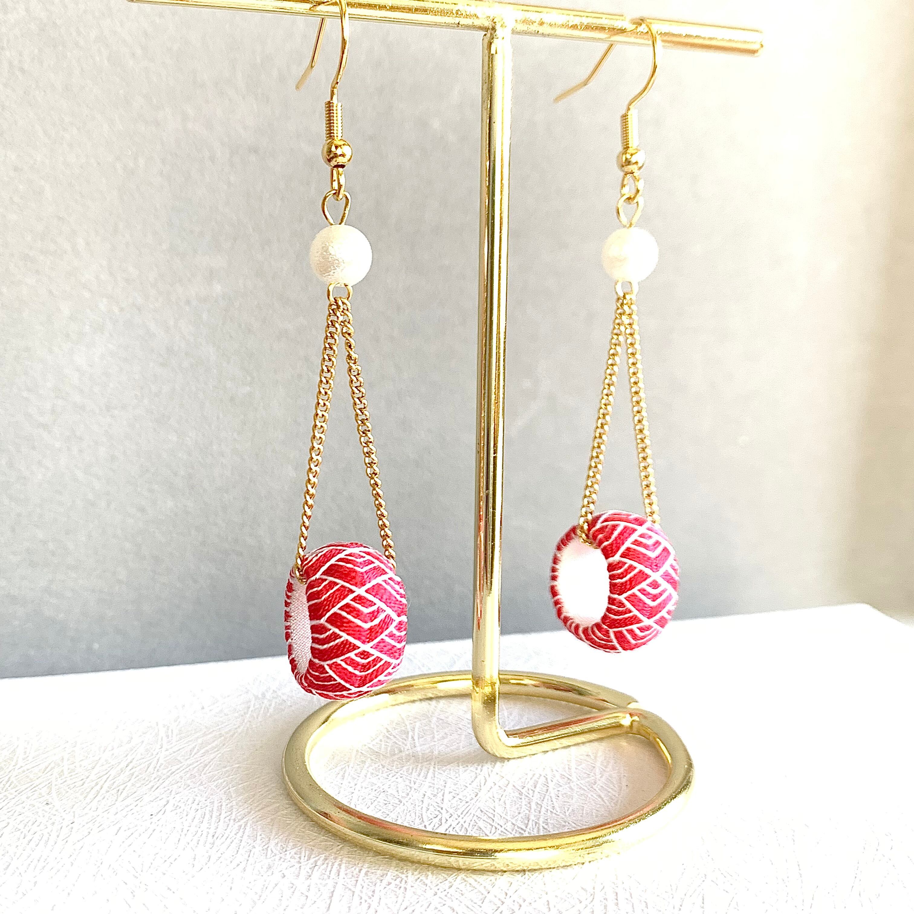シルクの糸を丁寧にかがって、ミニサイズの加賀ゆびぬきを作り、ピアスにしました。